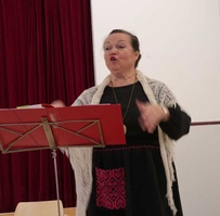 ![]() Taina Piira johtaa kuoroamme | ![]() Kuoron esitys 22.9.2022 kirjastossa. Hanuristimme Arto Heiskanen. |