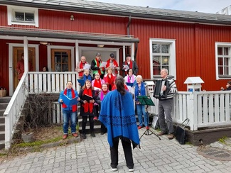 ![]() 06.05.2023 lauloimme Hyrylän Torpalla Omakotipäivillä. Taina johti ja Arto soitti haitaria. Kiitos Pirjo hienoista kuvista. | ![]() Kuoromme jäseniä ReijoL, Reijo I,Rauno, Kyösti, Paula, Sointu, Eira, Satu, Marja, Sinikka, Ulla, Helka ja Annette |