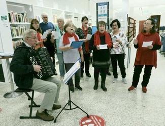 ![]() Esiinnyimme Ikäihmisten Iloisessa Infoiltapäivässä 22.09.2022 kirjastossa. Meillä kaikilla oli hauskaa ja laulu sujui melko hyvin! | ![]() Meitä oli siellä Sinikka, Ulla, Marja, Eila, Paula, Anne, Reijo L., Reijo I.,Sointu ja Annette sekä tietysti Arto hanurin kanssa. |