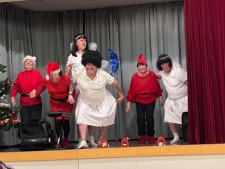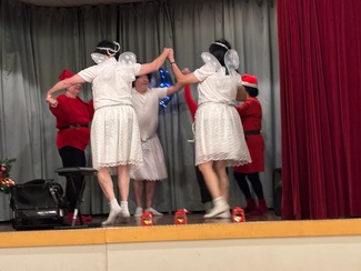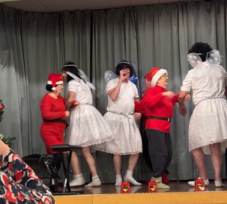 ![]() Kuoro Monisointuiset esiintyi pikkujoulujuhlissa ja hauskin laulu oli La cumparsitan joulu. Johtajana Taina Piira ja hanurissa Arto Heiskanen. | ![]() Pienet keijut tupsahtivat pikkujoulujuhliin Torpalle eli Kyösti, Arto ja Reijo ja laulu Hyvin hiljaa. |