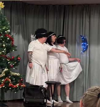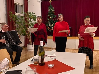 ![]() Kummarrukset olivat syviä. | ![]() Sinikka, Sirkka ja Eira lauloivat joululauluja ja Arto säesti. |