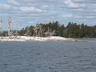 ![]() Merimetsojen ulosteiden autioittamia luotoja Suomenlahdella. | ![]() Kyllä on mukavaa matkustella kauniissa kesäsäässä tuumaa Eila. | ![]() Sointu ja Mauri kesätunnelmissä laivalla. |