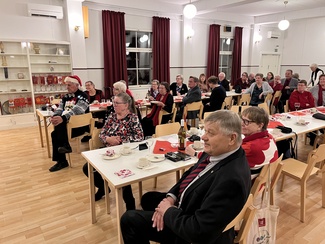 Meitä oli n. 43 jäsentä pikkujoulujuhlissa Hyrylän Torpalla. Ruoka oli Lounas Bostonista ja hyvää oli. Ruokajuomat kukin jäsen valitsi itse. Ohjelmassa oli kuoron esitys, sitten kolme Keijua ja kolme lilliputti Tonttua tanssivat. Mauri oli järjestänyt kivan vessapaperileikin ja Eija laulatti Metsämökin tontuista yhteislaulun. Marja pyysi Tainaa laulamaan aarian Oopperasta Carmen, hieno oli esitys ja lopuksi Eira, Sinikka ja Sirkka laulattivat meitä ja Arto säesti. Kyllä oli taas välitön ja mukava tunnelma Torpalla. Kiitos kaikille osanottajille.