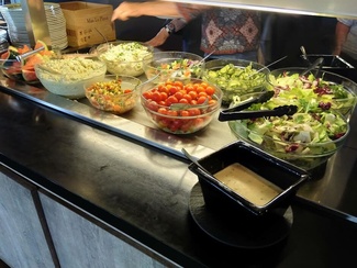 ![]() Seisovassa pöydässä oli vaikka mitä syötävää. Kuva Eila. | ![]() Salattiakin löytyi ja vesimelonia nam. Kuva Eila. |
