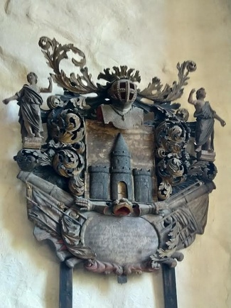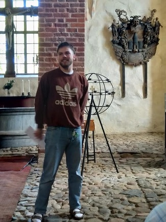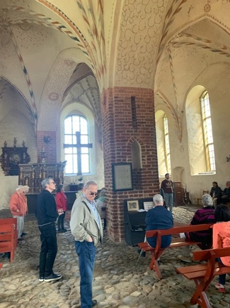![]() Pirjo P. ja Annette laivan kannella nauttimassa kesästä ja tuulesta. | ![]() Kävimme Sipoon Vanhassa Kirkossa, jossa maalattia ja nupukiviä. | ![]() Vaakuna kirkossa. |