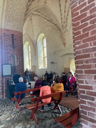 ![]() Kirkon opas. | ![]() Sipoon vanhassa kirkossa Mauri, Sointu, Merja, Pirjo K., Annette, Eila, Jorma, Opas, Satu, Marja, ReijoL. ja Eija, sekä ei meidän jäseniä. | ![]() Sipoon vanhassa kirkossa Erkki, Mauri, Sointu, Opas, Eira, Asko, Pirjo N. ja muutama ei jäsen. |