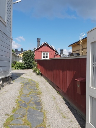 ![]() Kulmakivi talon seinustassa. Kuva Eila. | ![]() Ihania puutarhoja Tammisaaren vanhassa kaupungissa. Kuva Eila. |