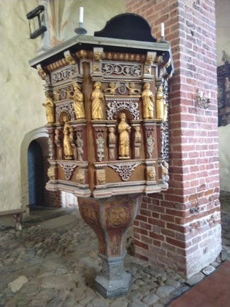 ![]() Pirjo P. ja Annette laivan kannella nauttimassa kesästä ja tuulesta. | ![]() Kävimme Sipoon Vanhassa Kirkossa, jossa maalattia ja nupukiviä. | ![]() Vaakuna kirkossa. |