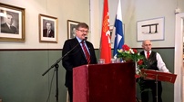 ![]() Terttu Lehtonen saa ruusun sihteeri Marja Holopaiselta. | ![]() Puheenjohtaja Jorma Sulander ja hanuristi Olavi Hartikainen. |